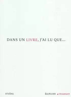 Dans un livre, j'ai lu que le mot « canoë » est arrivé en Europe grâce aux Espagnols. En somme, « canoë » a voyagé en « caravelle »... Dans un livre, j'ai lu que Cocteau fit rire un auditoire d'Immortels, en déclarant dans son discours de réception à l'Académie française : « Je sais que la poésie est indispensable. Mais je ne sais pas à quoi... » Dans un livre, j'ai lu que..., ce sont les trésors de lecture d'Eugène, insolites, drôles, érudits... Embarquement pour le pays des mots !Partagez avec Eugène vos propos trouvailles... Lisez et participez à la suite de l'aventure. Voir modalités du jeu à l'intérieur.-
